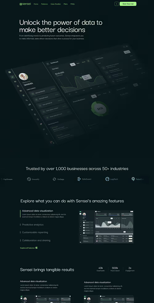 You don’t want your app looking like all the others out there. The dark theme of this template coupled with the pop of green color looks fresh, modern and exciting yet professional. All versions in this template are not only designed to be fully responsive across all devices.